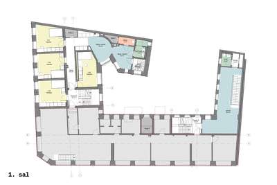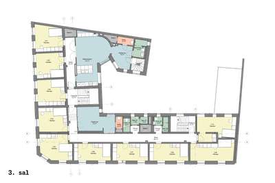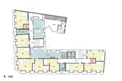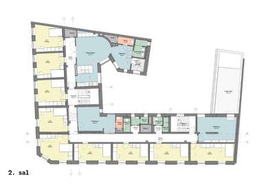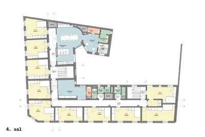 Øvrige fællesarealer: Kollegiet får 2 tagterrasser og et stort fælleshus i de lokaler, der tidligere husede Café Guldregn. I kollegiets kælder bliver der adgang til bl.a. vaskeri, tørrerum og cykelparkering.